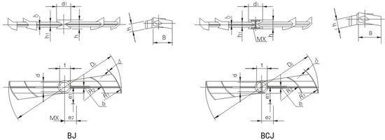 菱臂弧葉整體槳式BJ、菱臂弧葉可拆槳式BCJ